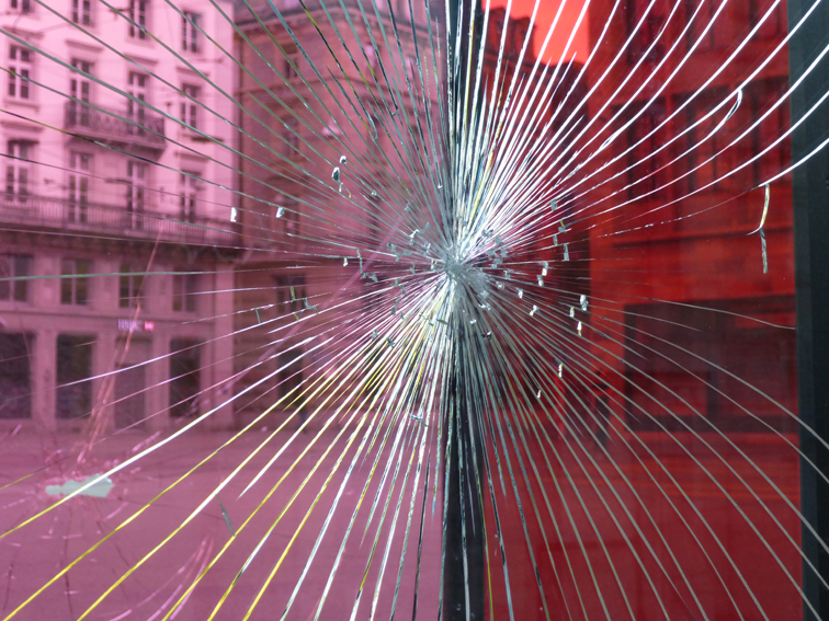 Lori Hersbergers Glaskulptur Dystopia Stalker am Paradeplatz provoziert. Bereits kurz nach der Vernissage waren nicht nur die bewussten Zerstörungen des Künstlers zu sehen, die dank Sicherheitsglas und -folie bloss Sprünge, aber keine Brüche verursachten. Glaswände waren zertrümmert und herausgebrochen. Der Glaserei-Pikettdienst war mehrfach im Einsatz.