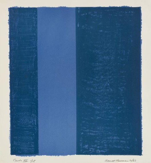 Was immer geht, in aller Ruhe: Such dir ein Bild aus, das dir gut tut. Sei dies im Netz, in einem Katalog oder in deinem inneren Bildarchiv. Bei mir ist das grad Barnett Newman, CANTO VII, eine Farblithographie aus einer Reihe mit 18 bildnerischen Gesängen, lat. Cantos. Wunderbar schlicht. Der Meister begleitet mich seit Langem.