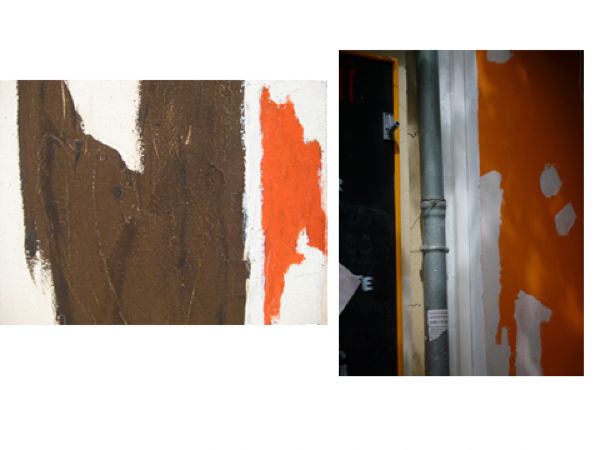 Installation oder Renovation? Zufall oder Gestaltung? Wer neugierig durch die Welt geht, schaut anders und sieht mehr. Man stutzt, bleibt stehen, freut sich, fragt sich – und Bilder aus der Kunstwelt scheinen auf. Vielleicht auch bei Ihnen? Das sind Geschenke im Vorbeigehen: Die gestischen Farbkleckse an einer Berliner Fassade wirken wie Kunst am Bau von Clifford Still.